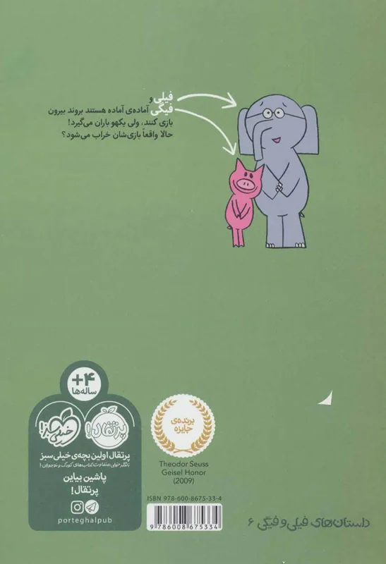 فیگی بینهایت هیجانزده است؛ روزی ایدهآل برای بازی در فضای باز پیش روی اوست. اما شادیاش دیری نمیپاید-ابرها جمع میشوند و باران میبارد. برنامهی بازیاش بههم میریزد و او با صدایی بلند، از «ناعادلانه» بودن اوضاع گله میکند. فیلی، همان فیل آرام و متفکر، سعی میکند دلداریاش دهد، اما فیگی در ناامیدیاش فرو رفته است. تا اینکه دو کرم کوچک وارد صحنه میشوند-و با خوشی در باران میچرخند. فیگی لحظهای درنگ میکند، و نگاهش به ماجرا عوض میشود. شاید باران آنقدرها هم بد نباشد. شاید بازی در زیر باران، با دوستی وفادار در کنارت، به تجربهای ناب تبدیل شود.