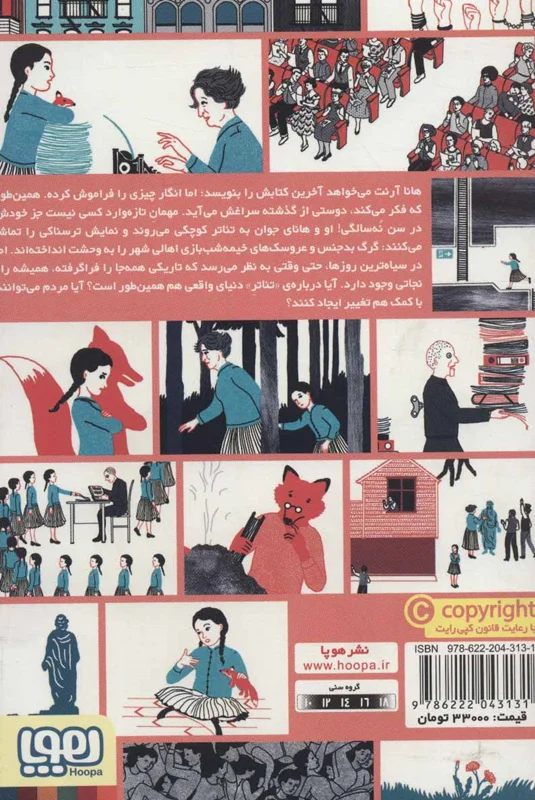 در کتاب« تماشاخانه ی کوچک هانا آرنت» ، فیلسوف هانا آرنت در آستانه اتمام آخرین کتاب خود است، اما او مطمئن است که چیزی کم است. همانطور که او در مورد کلمات خود گیج می شود، یک دوست از گذشته او را ملاقات می کند - کسی جز خود نه ساله اش! او با اکراه، دست یاری هانا جوان را می پذیرد و به دختر کوچک ژاکتی آبی می پیوندد و در یک ماجراجویی در خیابان های شهر نیویورک به یک تئاتر کوچک می پیوندد، جایی که آنها یک نمایش ترسناک درباره شهری را تماشا می کنند که توسط یک گرگ شیطان صفت و دسته عروسک هایش وحشت زده شده است. اما، حتی در سیاه ترین لحظات، زمانی که به نظر می رسد شر مطمئنا غالب می شود، همیشه می توان اوضاع را تغییر داد. آیا می توان همین را در مورد «تئاتر» دنیای واقعی گفت که در آن افراد واقعی گرد هم می آیند تا تغییر ایجاد کنند؟