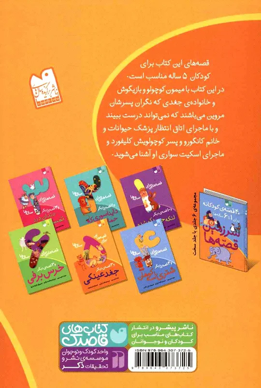 قصههای این کتاب برای کودکان 5 ساله مناسب است. در این کتاب با میمون کوچولو و بازیگوش و خانوادهی جغدی که نگران پسرشان مروین میباشند که نمیتواند درست ببیند و با ماجرای اتاق انتظار پزشک حیوانات و خانم کانگورو و پسر کوچولویش کلیفورد و ماجرای اسکیتسواری او آشنا میشوید.
