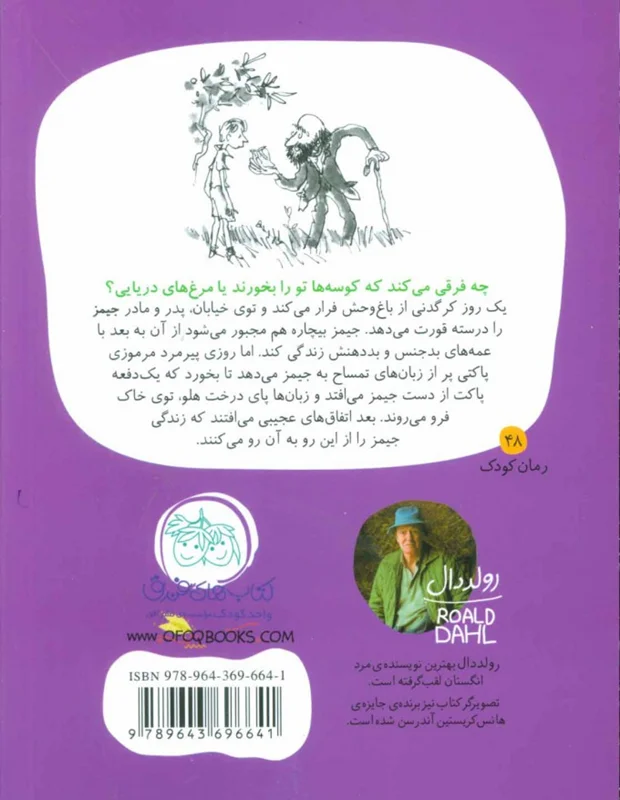 یک روز کرگدنی از باغوحش فرار میکند و توی خیابان، پدر و مادر جیمز را درسته قورت میدهد. جیمز بیچاره هم مجبور میشود از آن به بعد با عمههای بدجنس و بددهنش زندگی کند. اما روزی پیرمرد مرموزی پاکتی پر از زبانهای تمساح به جیمز میدهد تا بخورد که یکدفعه پاکت از دست جیمز میافتد و زبانها پای درخت هلو، توی خاک فرو میروند. بعد اتفاقهای عجیبی میافتند که زندگی جیمز را از اینرو به آنرو میکنند.