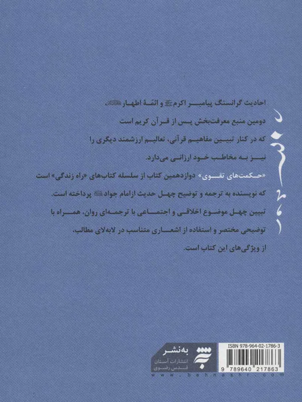 کتاب حاضر دوازدهمین کتاب از سلسله کتاب های «راه زندگی» است که نویسنده به ترجمه و توضیح چهل حدیث از امام جواد علیه السلام پرداخته است. تبیین چهل موضوع اخلاقی و اجتماعی با ترجمه ای روان، همراه با توضیحی مختصر و استفاده از اشعاری متناسب در لابه لای مطالب از ویژگی های این کتاب است.