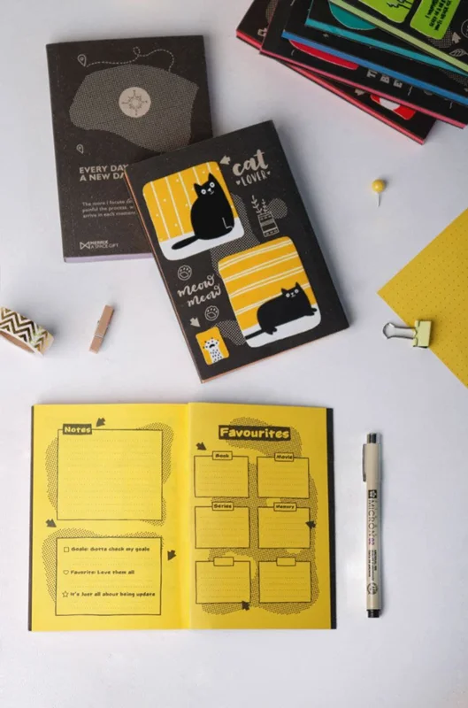 ۳. دفتر برنامه ریزی روزانه با طراحی ویژه خودتان (در ابتدای این دفترچه، جدول های ردیابی عادت یا هبیت ترکر و جدول علاقه مندی ها فیلم و کتاب قرار داده شده)