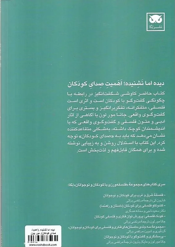 کتاب دیده اما نشنیده؛ اهمیت صدای کودکان که برگزیدۀ جایزه آثار علمی برجسته سال 2022 است، کاوشی شگفتانگیز در رابطه با چگونگی گفتوگو با کودکان است و اثری است فلسفی، متفکرانه، تفکربرانگیز و بستری برای گفتوگوی واقعی. جانا مور لون با آگاهی از آثار ادبی و متون فلسفی و گفتوگوی واقعی که با اندیشمندان کوچک داشته، بهشکلی متقاعدکننده نشان میدهد که باید به «صدای کودکان» توجه کرد. این کتاب که با استدلال روشن و به زیبایی نوشته شده، در درجۀ اول به کودکان در سن ابتدایی، پنج تا دوازده سال و راههای «دیده و نشنیده»شدن آنها تمرکز خواهد کرد. چشماندازها و بینشهای کودکان بهعنوان انسانهای «ناتمام»، بهدلیل خردسالیشان ناچیز تلقی میشود!