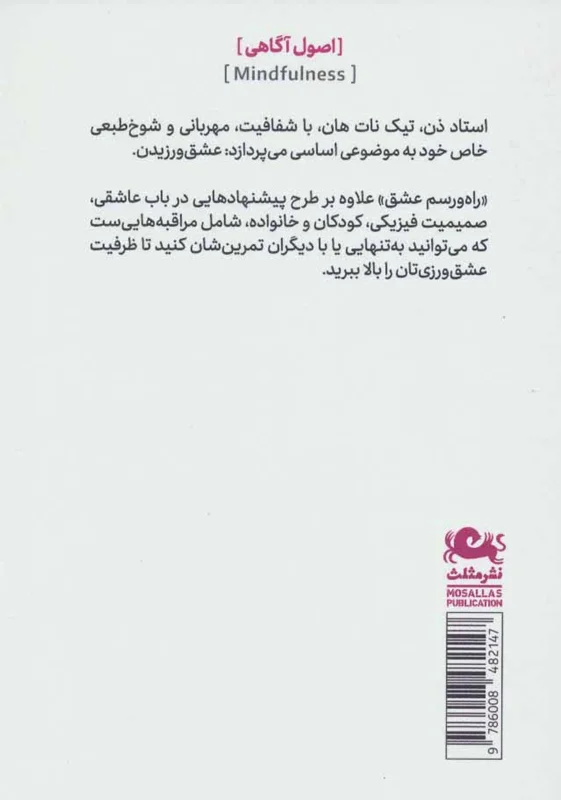 سومین کتاب از سری پرفروشترین ملزومات ذهنآگاهی، کتاب "راه و رسم عشق" از استاد مشهور جهانی "تیچ نات هان" است که همه را با ملزومات تمرین تمرکز حواس آشنا میکند.