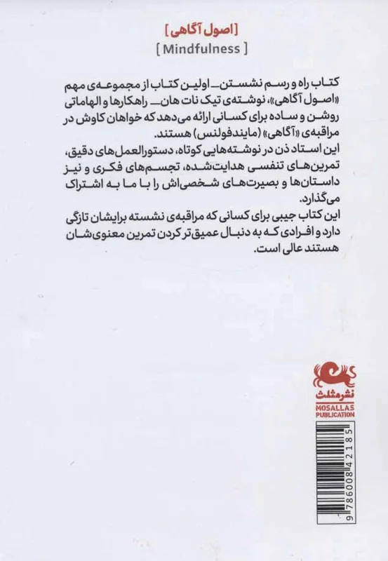 کتاب راه و رسم نشستن اولین جلد از یک مجموعه ی جدید تحت عنوان "راه و رسم" است که توسط استاد ذن تیک نات هان نوشته شده است. این کتاب ذهن آگاهی را به افراد مبتدی معرفی کرده و موارد ضروری برای تمرین ذهن را به آنها یادآوری می کند. کتاب راه و رسم نشستن که با تصاویر سیاه و سفید و جسورانه جیسون دی آنتونیس تصویرگری شده است، دستورالعمل های صریح و ساده ای راجع به مکانیک استقرار و تنفس ، همراه با دستورالعمل هایی برای دستیابی به آگاهی و موقعیت شفاف ریلکس شدن است تا بتوانیم به تمرکز دست یابیم . های تیک نات هان یک سری مراقبه ها جهت راهنمایی را به اشتراک می گذارد که به ما کمک می کند تا به نفس خود برگردیم ، مدتی را در لحظه فعلی سپری کنیم و به خانه خود بیاییم.