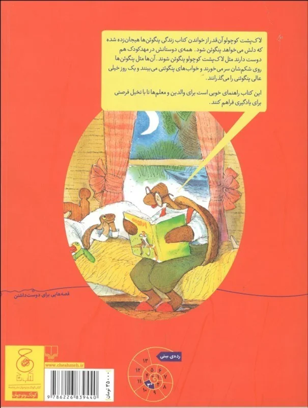 لاک پشت کوچولو آن قدر از خواندن کتاب زندگی پنگوئن ها هیجان زده شده که دلش می خواهد پنگوئن شود. همه ی دوستانش در مهدکودک هم دوست دارند مثل لاک پشت کوچولو پنگوئن شوند. آن ها مثل پنگوئن ها روی شکم شان سر می خورند و خواب های پنگوئنی می بینند و یک روز خیلی عالی پنگوئنی را می گذرانند. این کتاب راهنمای خوبی است برای والدین و معلم ها تا با تخیل فرصتی برای یادگیری فراهم کنند.