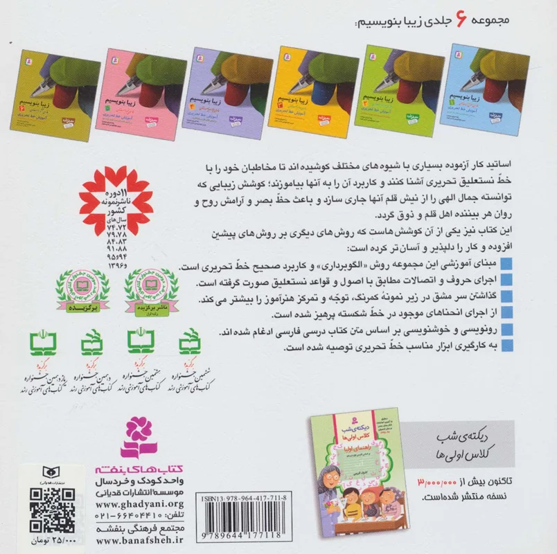کتاب زیبا بنویسیم پنجم دبستان از سری کتاب های انتشارات قدیانی است که این کتاب برای خوشنویسی و زیبا تر نوشتن مناسب است.