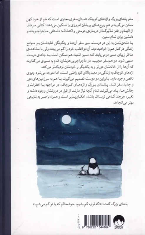 پاندای بزرگ و اژدهای کوچک، در مواجهه با خطرات و چالشها، یاد میگیرند تمام آنچه نیاز دارند از قبل در درونشان وجود داشته و تغییر، هرچند گاهی ترسناک باشد، امکانپذیر است و همراه با صبر به نتایجی بهتر میانجامد. با ملحق شدن به این دو دوست، سیر سفر آنها و چگونگی غلبهشان بر موانع زندگی در کنار هم را خواهید دید. آن دو اغلب خود را گم میبینند ولی با مشاهدهی مناظر زیبای مسیر درمییابند که مسیر اشتباه هم ممکن است به جادهی درست منتهی شود. سفر پاندای بزرگ و اژدهای کوچک داستان سفری معنوی است که هم از خرد کهن سخن میگوید و هم روحهای پریشان امروزی را تسکین میدهد؛ کتابی سرشار از الهام و طنز تأثیرگذار دربارهی دوستی و اکتشاف؛ داستانی ماجراجویانه و دلنشین برای تمام سنین.