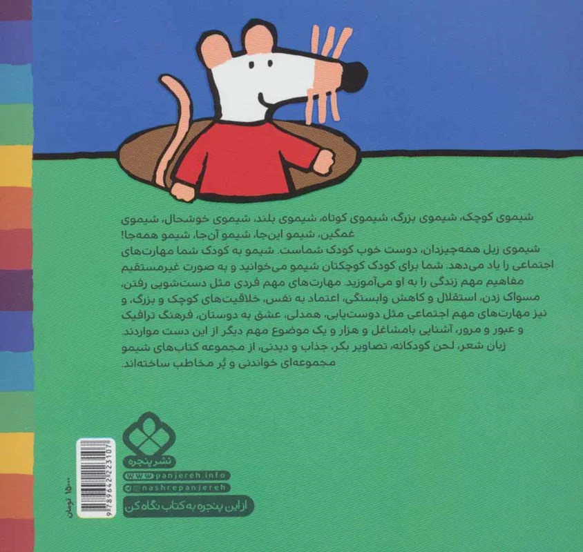 شیموی کوچک،شیموی بزرگ،شیموی کوتاه،شیموی بلند،شیموی خوشحال،شیموی غمگین،شیمو این جا،شیمو آن جا،شیمو همه جا،شیموی زبل همه چیز دان،دوست خوب کودک شماست.شیمو به کودک شما مهارت های اجتماعی را یاد می دهد.شما برای کودک کوچکتان شیمو می خوانید و به صورت غیر مستقیم مفاهیم مهم زندگی را به او می آموزید.مهارت های مهم فردی مثل دست شویی رفتن ،مسواک زدن،استقلال و کاهش وابستگی،اعتماد به نفس،خلاقیتهای کوچک و بزرگ،و نیز مهارت های مهم اجتماعی مثل دوست یابی،همدلی،عشق به دوستان،فرهنگ ترافیک و عبور و مرور ،آشنایی با مشاغل و هزار و یک موضوع مهم دیگر از این دست مواردند.زبان شعر،لحن کودکانه ،تصاویر بکر،جذاب و دیدنی،از مجموعه کتاب های شیمو مجموعه ای خواندنی و پرمخاطب ساخته اند .