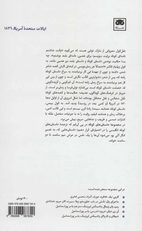 کتاب «فروپاشی خانمان آشر» چهارده تا از غنیترین و تأثیرگذارترین داستانهای ادگار آلن پو را گرد هم میآورد. این کتاب با ترجمه فاطمه کاملان توسط نشر لگا منتشر شده است. در این داستان همۀ عناصر معروف داستانهای پو را میتوان دید: خانهای گوتیک، راوی وحشتزده، زنده زنده دفنکردن، جنون و فاجعهای بزرگ و وحشتناک. فروپاشی خانمان آشر یکی از محبوبترین و بحثانگیزترین داستانهای آلن پو است که تفاسر متفاوت زیادی از آن داشتهاند.ادگار آلن پو (1809-1949) ابتدا در انگلستان، سپس در یک مدرسه خصوصی در ریچموند تحصیلات خود را سپری کرد و بعدا یک سال را در دانشگاه ویرجینیا گذراند. او در بالتیمور زندگی کرد و در آنجا مبارزه مادام العمر با فقر، ناامیدی از عشق و اعتیاد به الکل را آغاز کرد. این آخرین نقص باعث شد که او نتواند پستهای سردبیری را که بعدا در مجلات ریچموند، فیلادلفیا و نیویورک به دست آورد، حفظ کند. علیرغم این واقعیت که داستانها و نقد کتابهایی که او انجام میداد تا حد زیادی تیراژ را افزایش داد. در ماه مه 1836 با ویرجینیا کلم، فرزند سیزده ساله و دختر خاله پدری، ازدواج کرد.