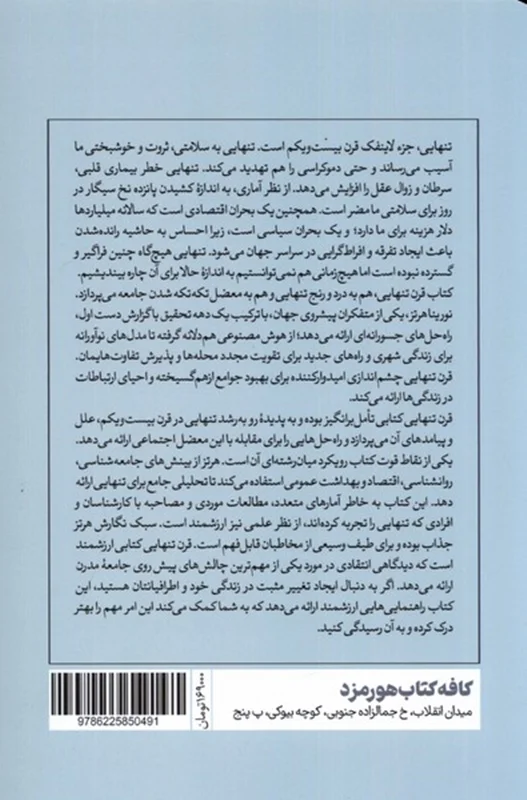 قرن بیستویکم، قرن جدایی انسانها از یکدیگر، قرن تنهایی و زوال روابط انسانی است که همۀ ما این را با تمام وجود تأیید و تصدیق میکنیم. کتاب «قرن تنهایی» اثر نورینا هرتز، تحلیلی روشنگر از اپیدمی فراگیر تنهایی است که میلیونها انسان را در سراسر دنیای امروزی تحتتأثیر خود قرار داده است و سعی میکند راهکارها و راهحلهایی برای مقابله با تنهایی ارائه کند. نورینا هرتز، نویسندۀ مشهور انگلیسی، برای نوشتن این کتاب دست به تحقیقات و مصاحبههای گسترده درخصوص موضوع تنهایی زده و تأثیر آن را بر جنبههای مختلف زندگی انسانها، منجمله سلامت، ثروت، شادی و دموکراسی را مورد بررسی قرار داده است.
