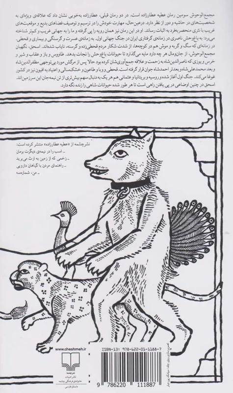 مجمعالوحوش سومین رمان عطیه عطارزاده است. در دو رمان قبلی، عطارزاده بهخوبی نشان داد که علاقهی ویژهای به شخصیتهای در حاشیه و دور از نظر دارد. در عین حال، مهارت خودش را در ترسیم و توصیف فضاهای بدیع و موقعیتهای غریب با نثری منحصر به فرد به اثبات رساند. او در این رمان نیز همان رویه را پی گرفته و ما را به جهانی غریب و کمتر شناخته میبرد؛ به باغوحش ناصری در زمانهی گرفتاری ایران در جنگ جهانی اول، به زمانهی عسرت و گرسنگی و بیماری و قحطی، در زمانهای که سگ و گربه و موش هم در کوچهها از شدت شکار مردم قحطیزده و گرسنه نایاب شدهاند. اسحق، نگهبان مجمعالوحوش، از جان و مال هر چه دارد مایه میگذارد تا حیوانات باغوحش را نجات بدهد