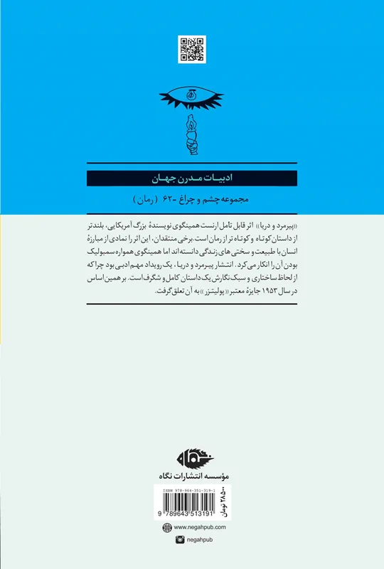 رمان پیرمرد و دریا، یکی از ماندگارترین آثار ارنست همینگوی است. کتاب با روایتی ساده و قدرتمند، داستان یک ماهیگیر کوبایی سالخورده ی بخت برگشته و بزرگ ترین آزمون زندگی اش نبردی نفس گیر و سخت با یک نیزه ماهی غول پیکر در دوردست های جریان خلیجی اقیانوس اطلس را حکایت می کند. در این رمان، همینگوی با سبکی معاصر که بسیار برجسته و قابل توجه است، موضوعاتی کلاسیک از قبیل جرأت و شجاعت در مواجهه با شکست و رسیدن دوباره به هدف را طرح ریزی کرده و به شکلی جدید به مخاطب عرضه می کند. این رمان بسیار موفق که در سال 1952 نوشته شده است، قدرت و جایگاه همینگوی را در دنیای ادبیات به تثبیت رساند و نقشی اساسی در کسب جایزه ی نوبل ادبیات در سال 1954، برای نویسنده اش ایفا کرد. منتقدان، نوشتن کتاب «رمان پیرمرد و دریا» را در دنیای ادبیات برابر با اختراع پیل الکتریکی در دنیای علم قلمداد کرده اند.
