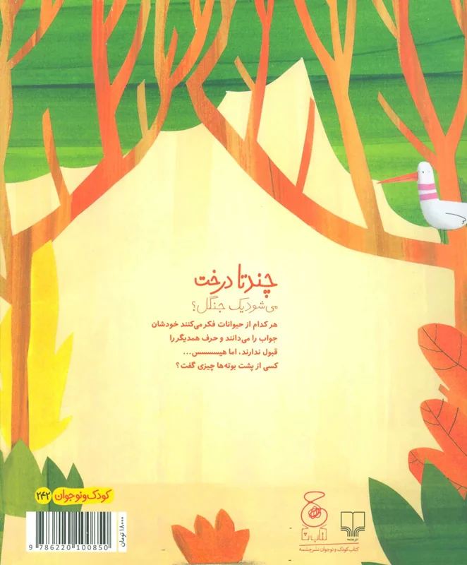 این کتاب دربردارنده داستانی با شخصیت هایی حیوانی است که کودکان را به گفت و گو و پرسش گری سوق می دهد. این مسئله که چند درخت می شود یک جنگل ذهن حیوانات را به خود مشغول کرده و هرکدام بدون آن که به حرف بقیه توجه کنند نظر خودشان را دارند تا اینکه…